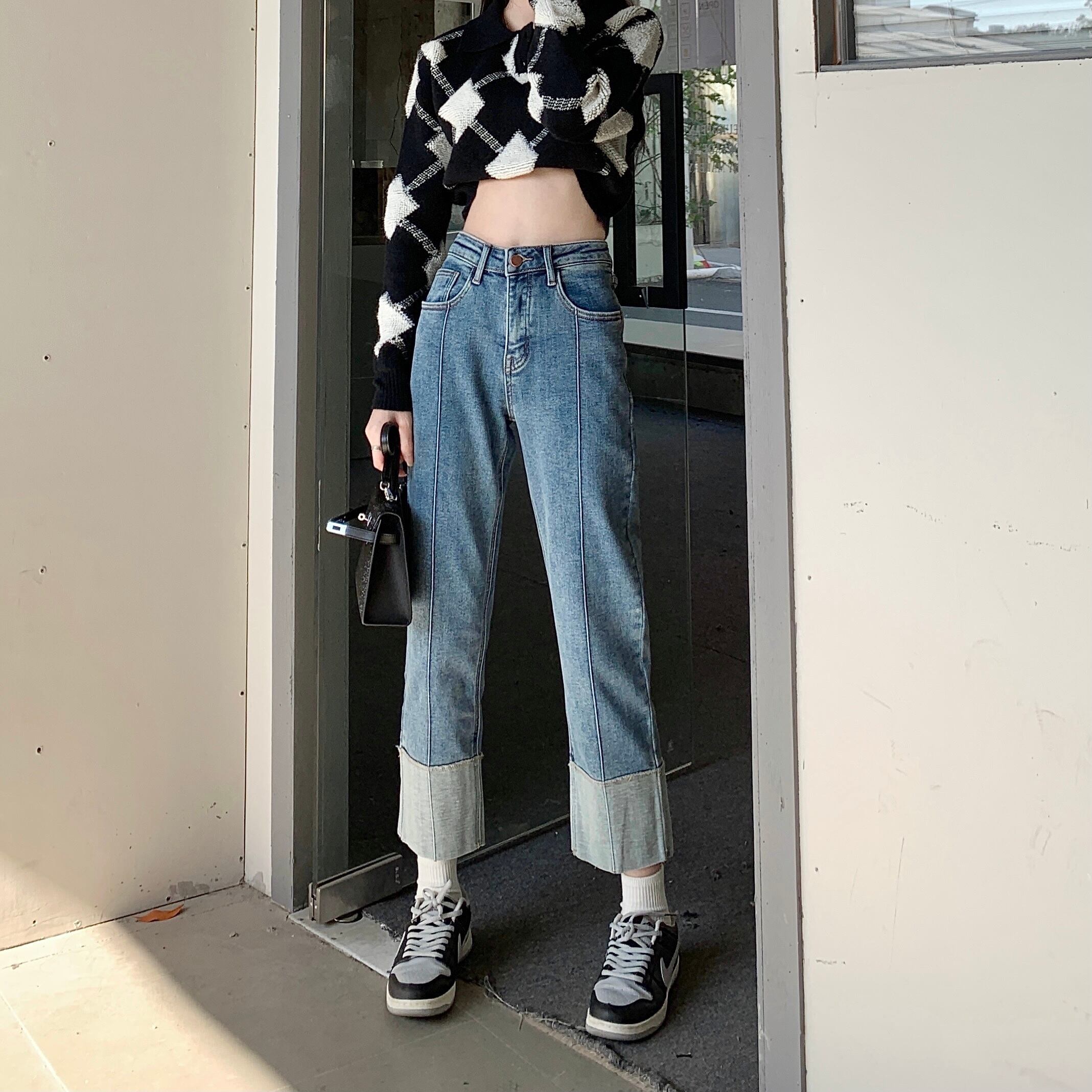 Nine-point jeans women's autumn and winter high waist slim cigarette pants 2022 new small straight pants trendy ins ハイウェスト オータム 秋物 ウィンター 冬物 スリム s576190233093065