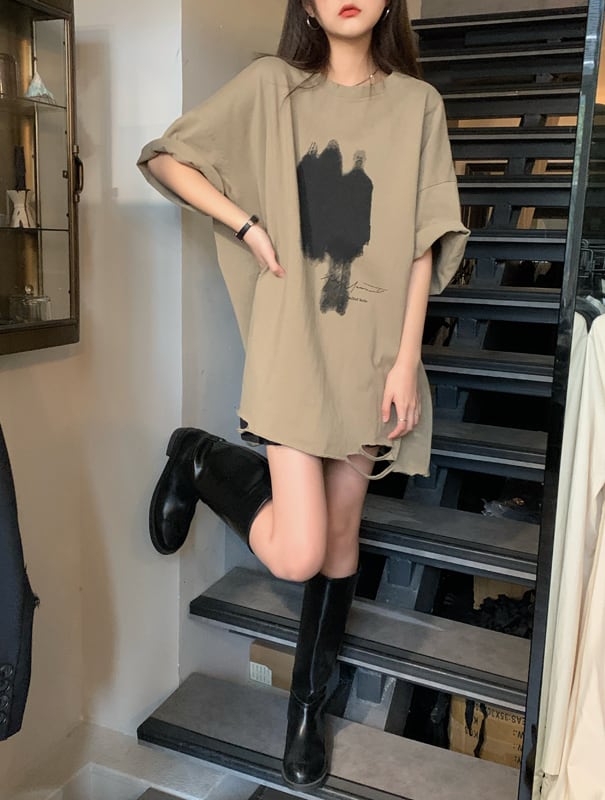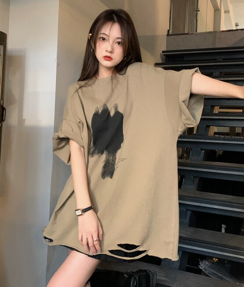 Cool Safeng hole short-sleeved T-shirt women's summer 2022 new design sense niche loose medium and long top clothes ロング サマー 夏物 Tシャツ s576164118424979