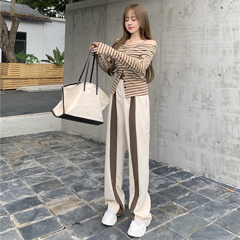 Hot striped long-sleeved T-shirt women's 2022 spring new design small and unique one-shoulder short top clothes ショート ロング スプリング 春物 ストライプ Tシャツ s576168450413091