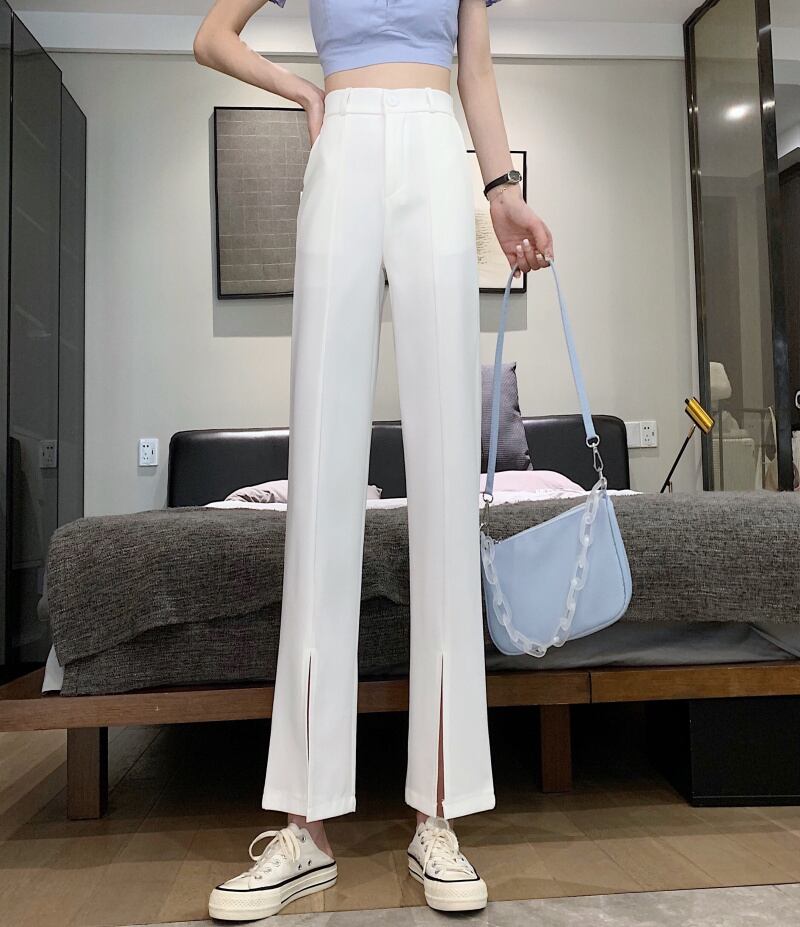 Spring and autumn black suit pants women's high waist drape split wide leg pants 2022 new loose straight casual pants ハイウェスト ブラック カジュアル スプリング 春物 オータム 秋物 ワイドレッグ ワイドパンツ s576133782016327