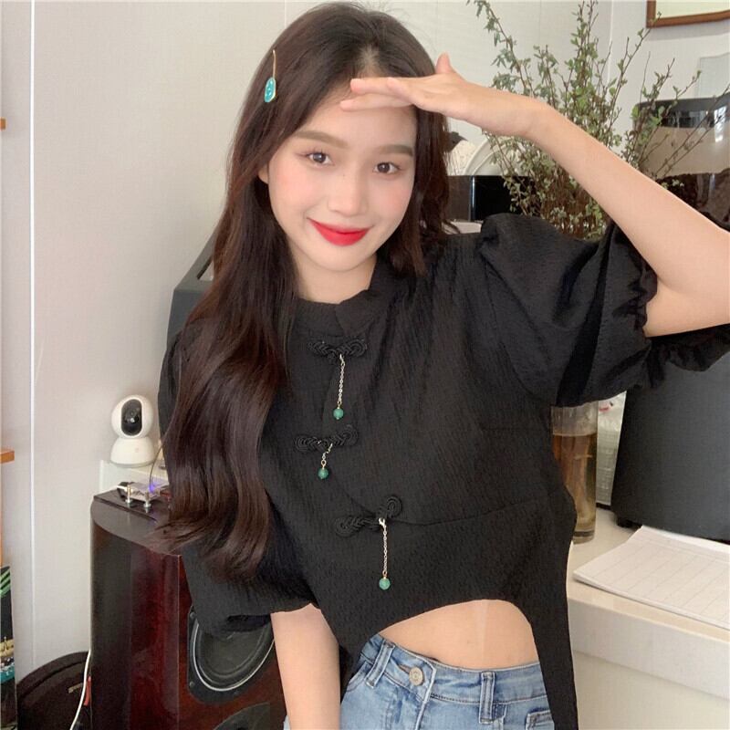 Chinese style short top women's summer design niche chic shirt 2022 new white puff sleeve shirt ショート ホワイト サマー 夏物 s5761496781884