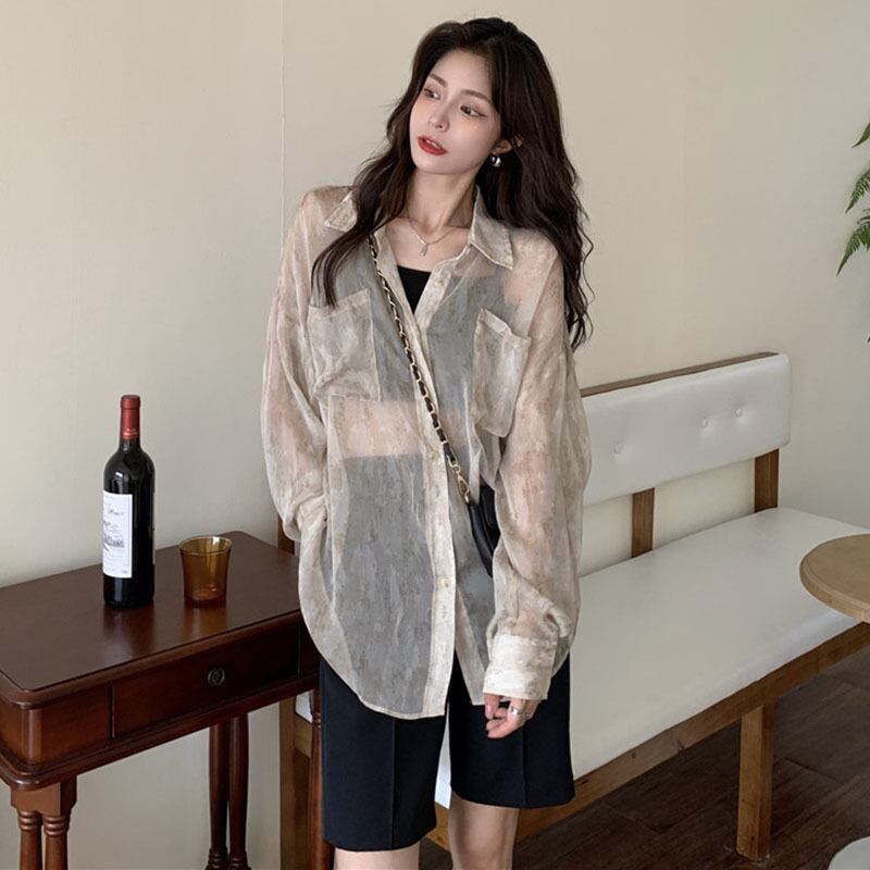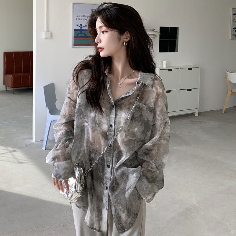 Tie-dye shirt jacket women's summer thin sunscreen shirt 2022 new retro Hong Kong flavor small fried street top レトロ ストリート サマー 夏物 s576131104267209