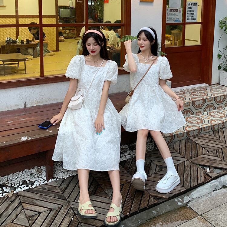 Puff sleeves square neck dress female summer 2022 new gentle temperament goddess fan milk sweet friend dress skirt 大人ガーリー スウィート キュート カジュアル サマー 夏物 スカート スクウェア s576117547629213