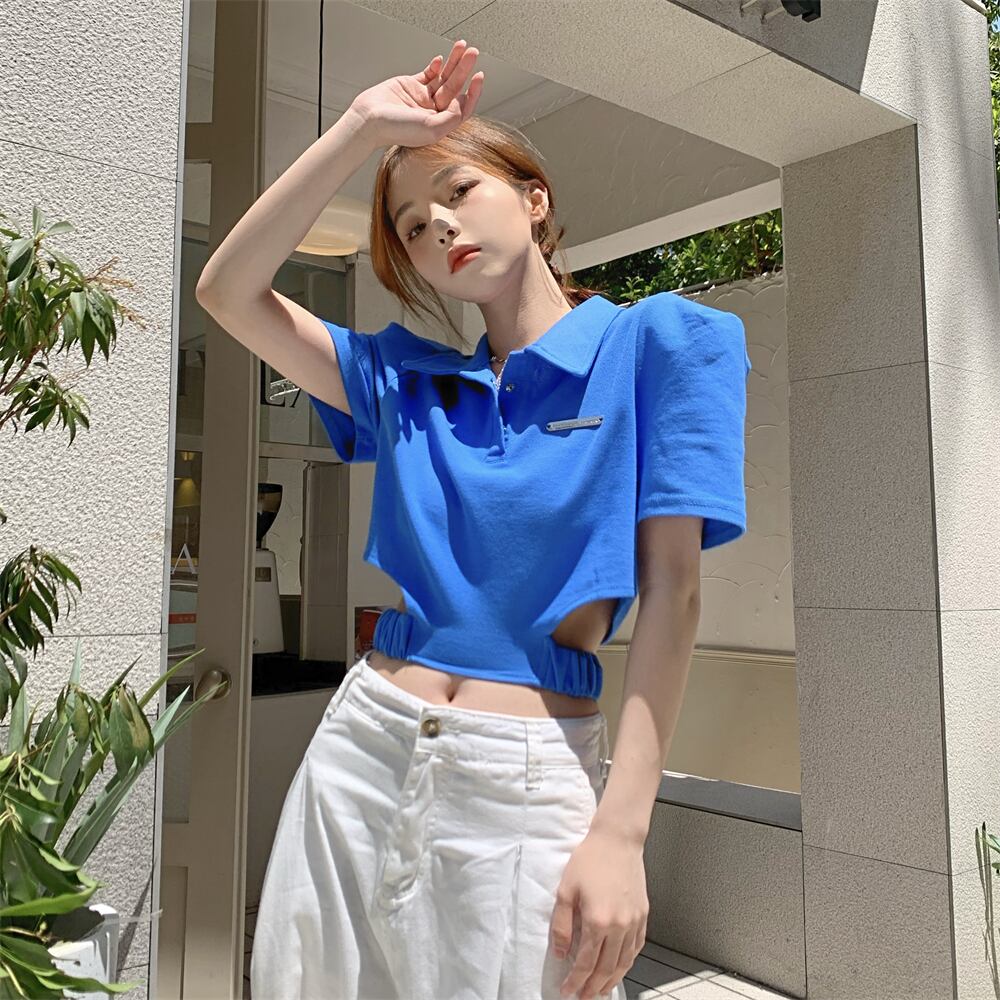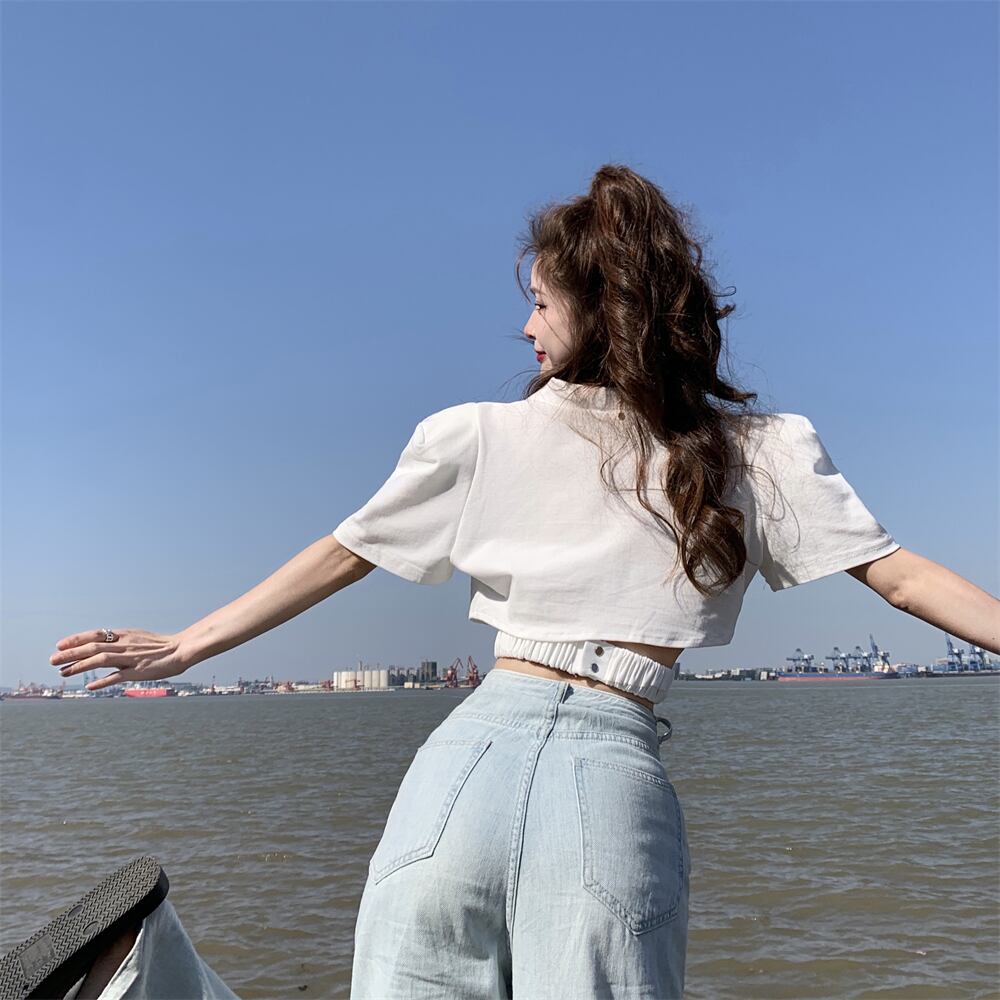 White short-sleeved T-shirt women's design sense niche summer chic Hong Kong style chic shoulder short top ins tide ショート ホワイト サマー 夏物 Tシャツ s576114584627976