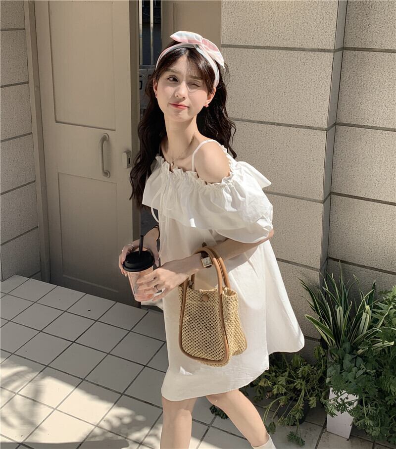 Pure desire wind one-shoulder dress female design sense niche summer small chic milk sweet white first love skirt ホワイト 大人ガーリー スウィート キュート カジュアル サマー 夏物 スカート s576180001870501