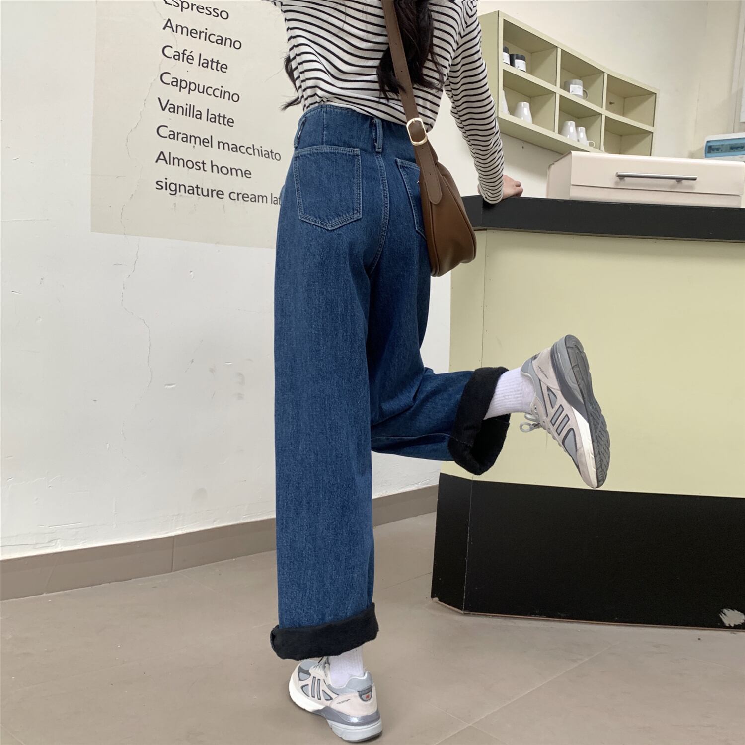 Dark blue jeans women's autumn and winter fleece wide-leg pants 2022 new small tall waist straight all-match pants ブルー オータム 秋物 ウィンター 冬物 s576198633476677