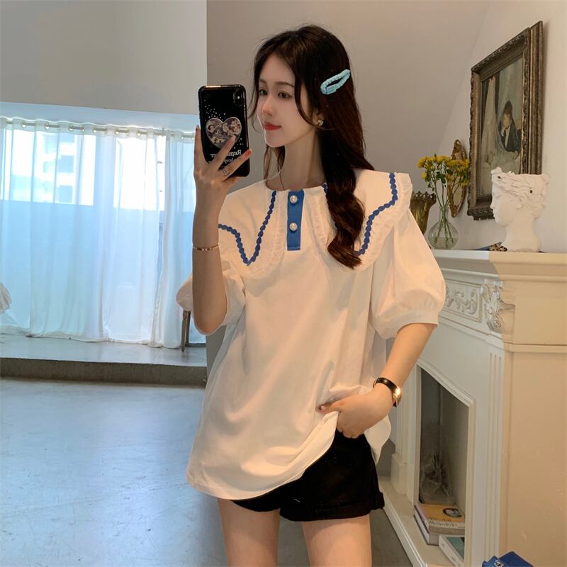 style chic doll collar top women's summer 2022 new design niche chic white puff sleeve shirt ホワイト サマー 夏物 s576167409995080