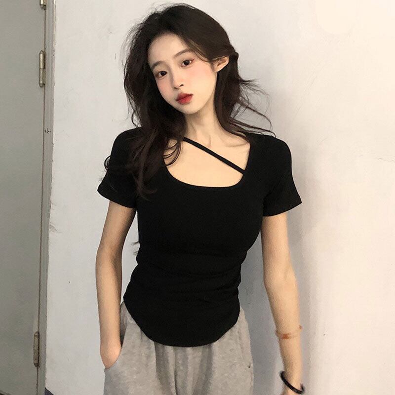 Pure desire style black short-sleeved T-shirt women's summer 2022 new design sense niche careful machine body-building clothes ブラック サマー 夏物 Tシャツ s576145465337604