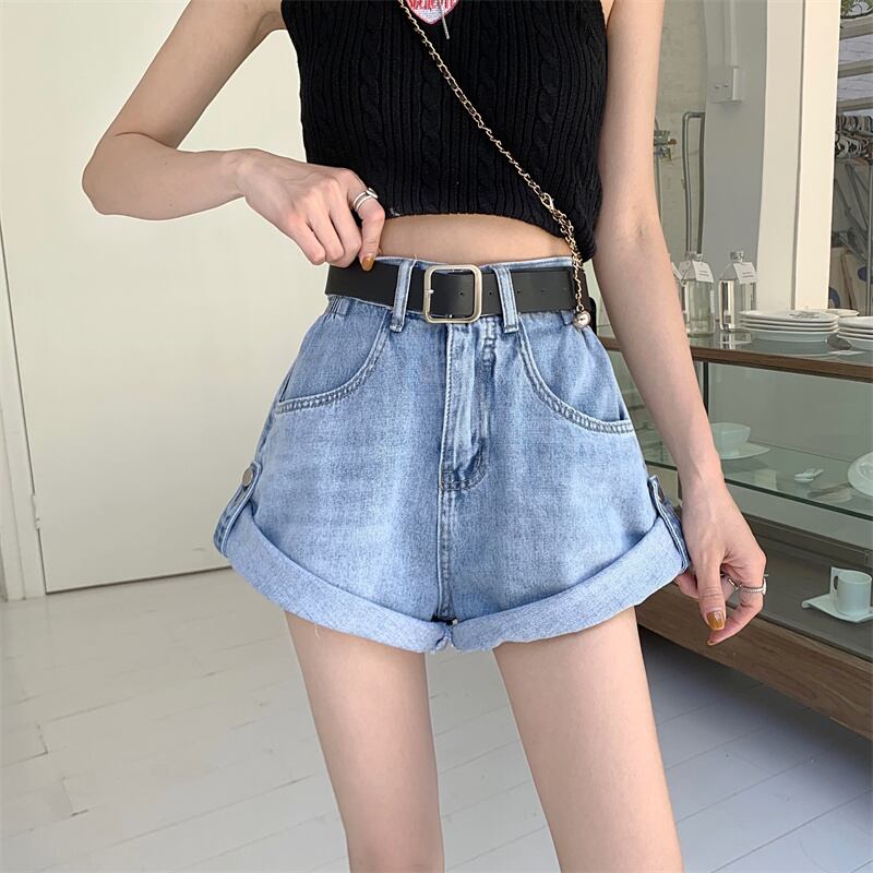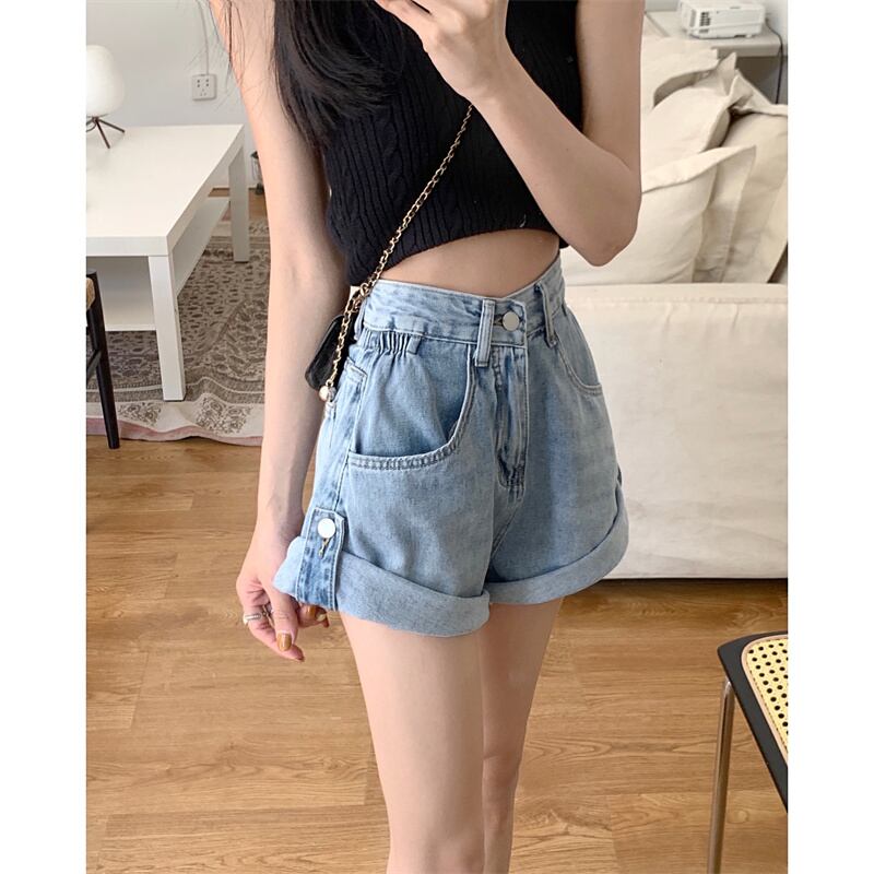 Sweet babes curly denim shorts women's summer 2022 new design sense small tall waist loose wide-leg pants 大人ガーリー スウィート キュート カジュアル サマー 夏物 ショーツ ブルマー s576112709943437