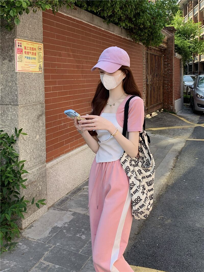 Spice Girls Contrast Color Short Sleeve T-Shirt Women's Summer 2022 Sense Small Slim Irregular Short Top Clothes ショート 半袖 ハーフスリーブ サマー 夏物 スリム Tシャツ s576169720395658