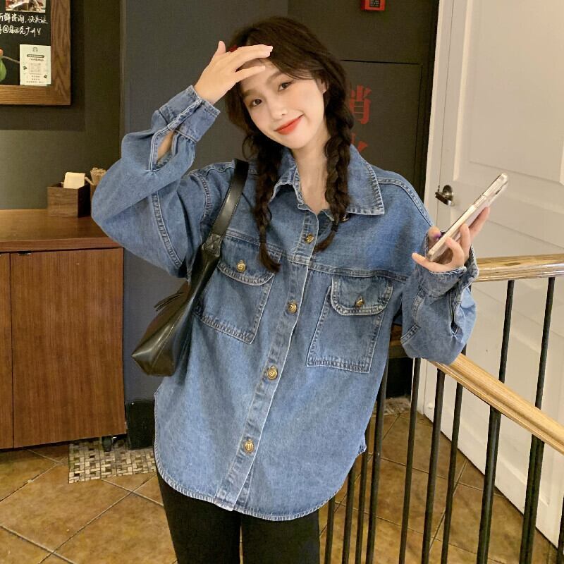 Long-sleeved denim shirt women's clothing design sense niche stacking shirts 2022 early spring new retro Hong Kong style tops ロング レトロ シャツ スプリング 春物 s57611151253323