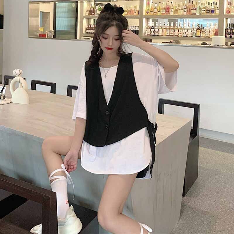 Women's suits and vests have a sense of niche design. They are stacked and worn with spring and autumn eign style fashion students loose black vests and waistcoats. ブラック スプリング 春物 オータム 秋物 s576143463700869