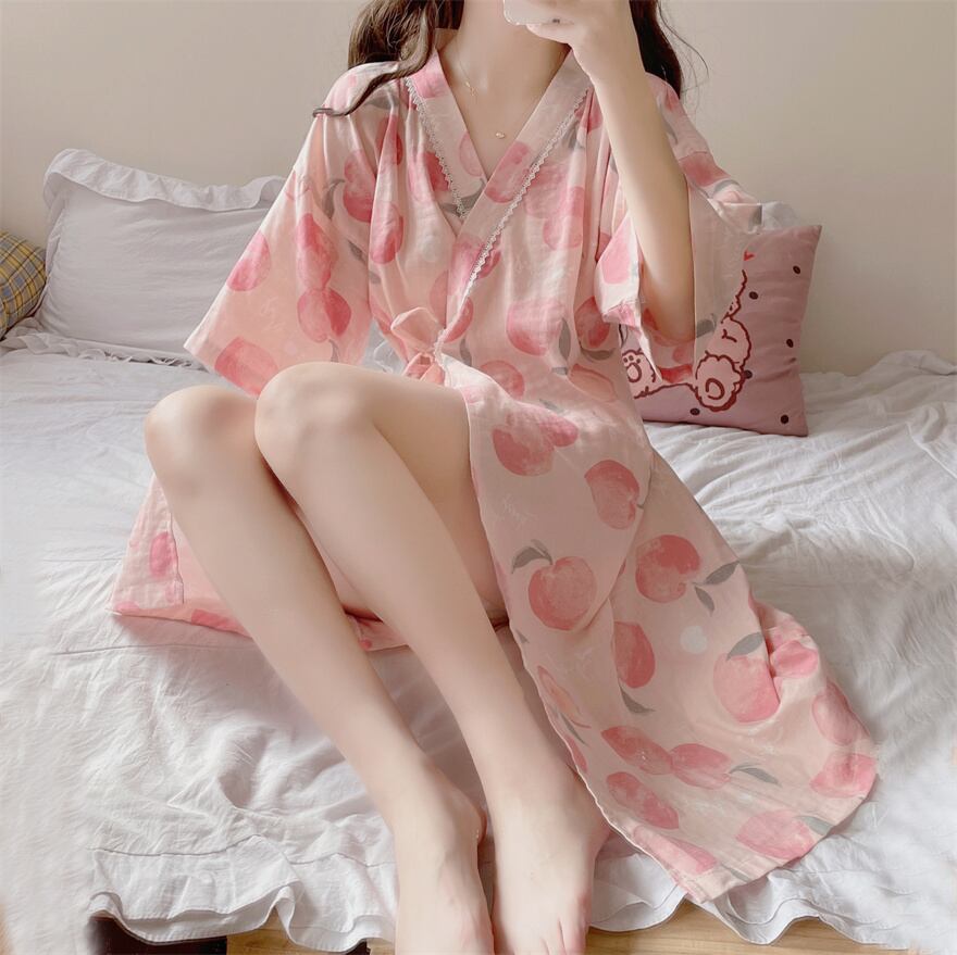 Short-sleeved nightdress women's summer thin kimono pajamas 2022 new pure desire wind sweet ese small home clothes 大人ガーリー スウィート キュート カジュアル サマー 夏物 ピュア s576163641162597