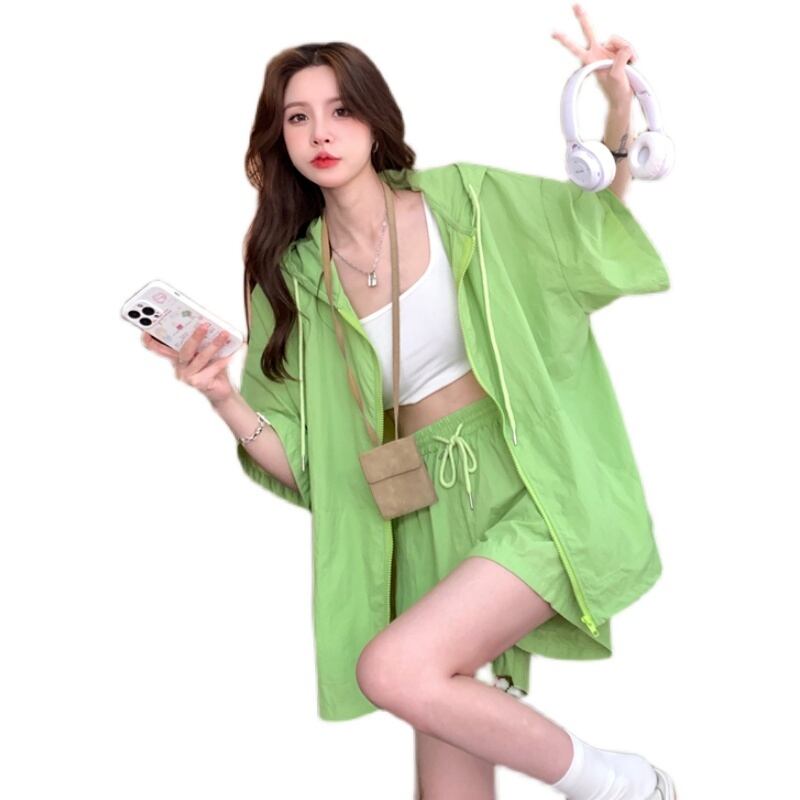 Salt series wear fashion suits female summer 2022 new sunscreen tops shorts net red eign casual two-piece suit レッド カジュアル サマー 夏物 ショーツ ブルマー s576165376820338