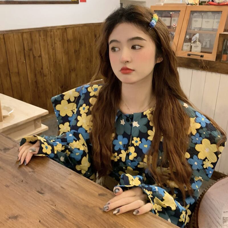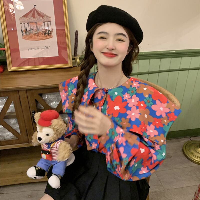 Floral shirt women's clothing design sense niche early spring 2022 new sweet style unique long-sleeved top ロング 大人ガーリー スウィート キュート カジュアル スプリング 春物 花柄 s576149141754936