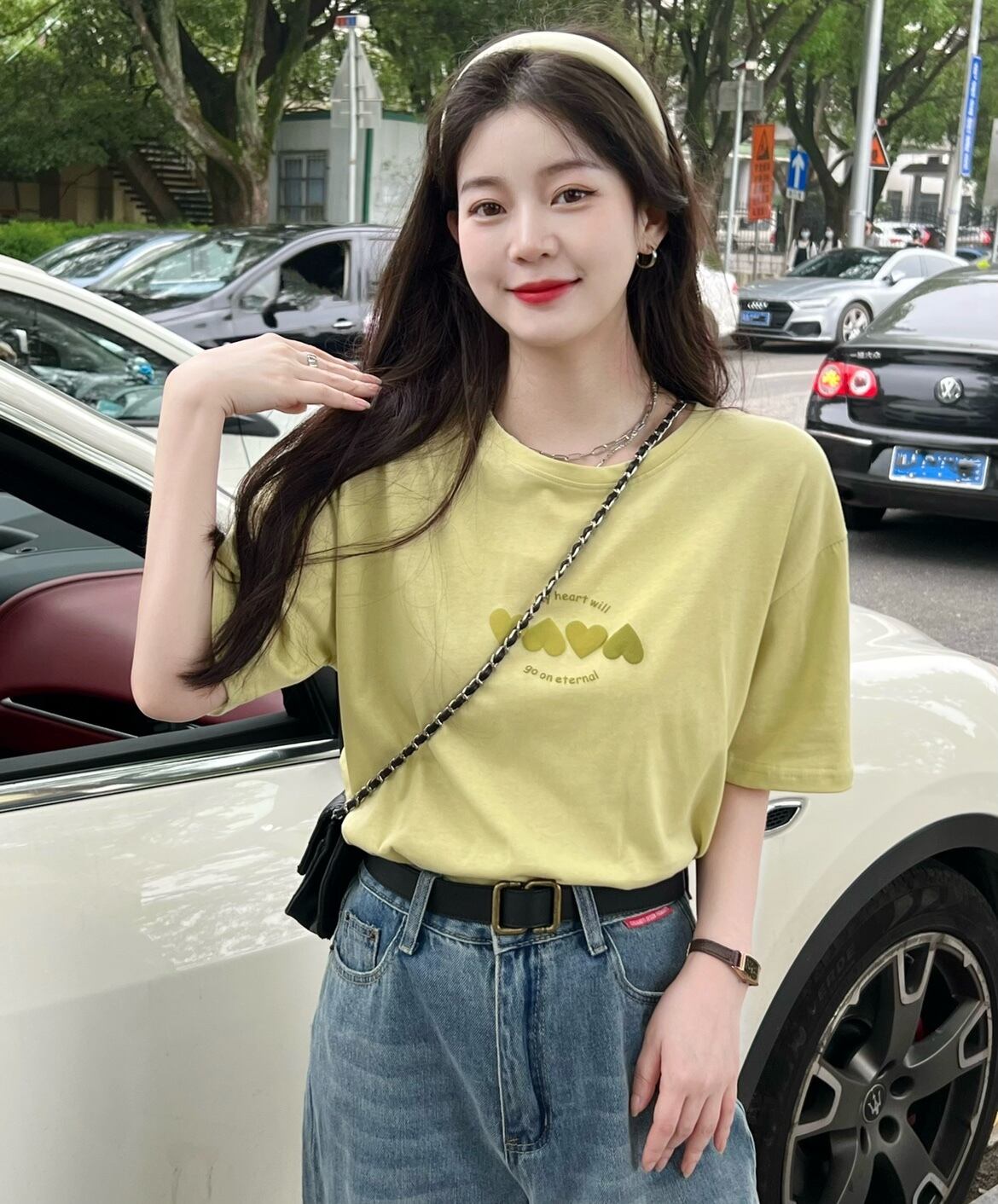 Pink short-sleeved T-shirt women's summer 2022 new design sense niche loose western style all-match top clothes ins tide ピンク サマー 夏物 Tシャツ s576125437692377