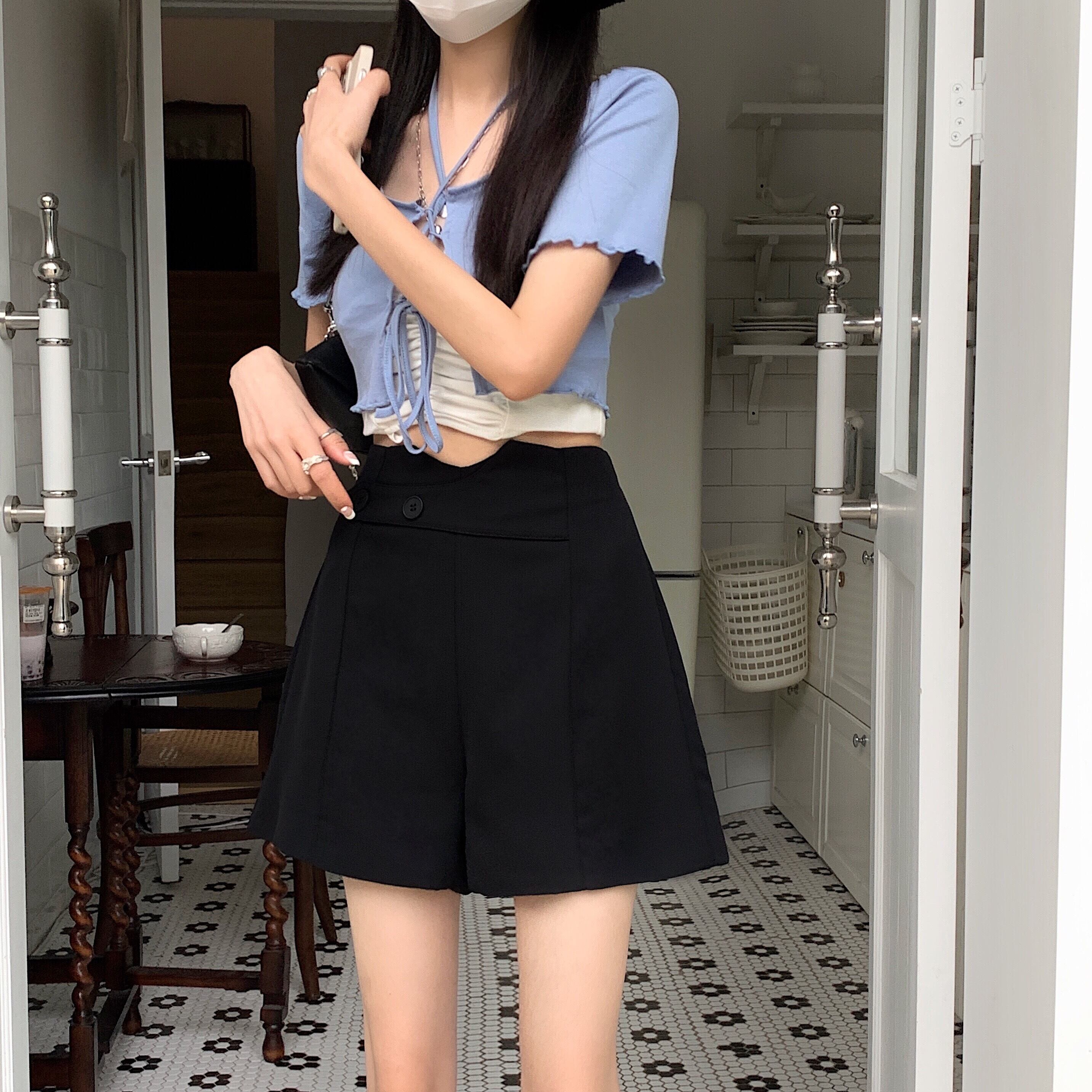 Black suit shorts women's summer 2022 new small tall waist thin loose casual A-line wide-leg pants ブラック カジュアル サマー 夏物 ショーツ ブルマー Aライン s576176015953791