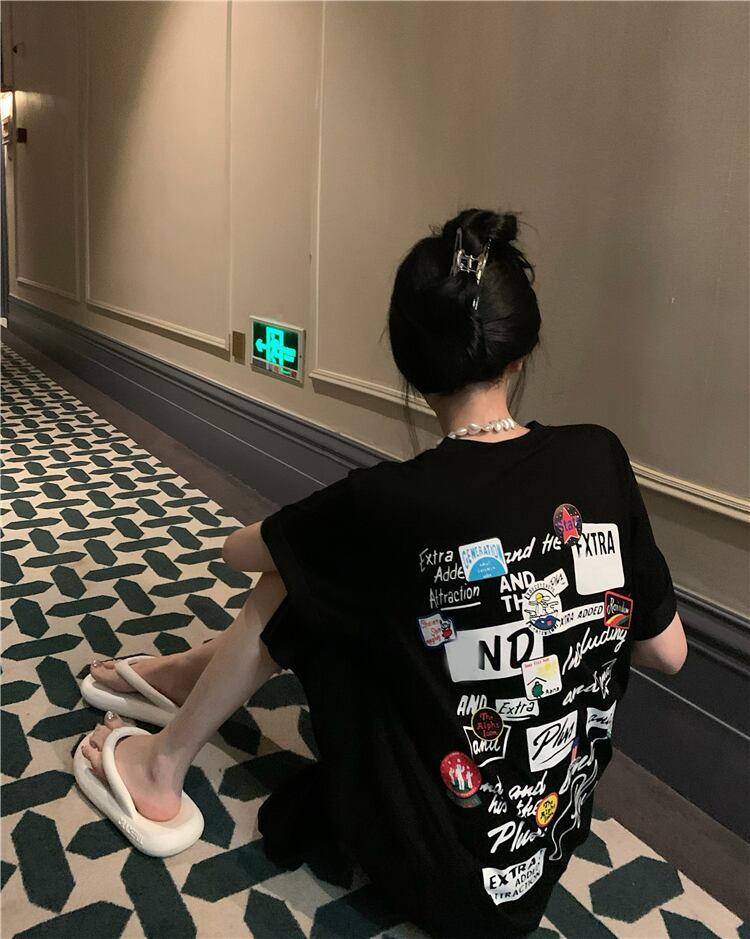 Black T-shirt dress women's design sense niche summer 2022 new pear-shaped figure loose casual long skirt ロング ブラック カジュアル サマー 夏物 スカート Tシャツ s576186108782791