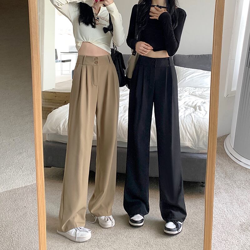Khaki suit pants women's summer high waist drape 2022 new loose mopping casual wide leg pants trendy ins ハイウェスト カジュアル サマー 夏物 ワイドレッグ ワイドパンツ s57618405467000