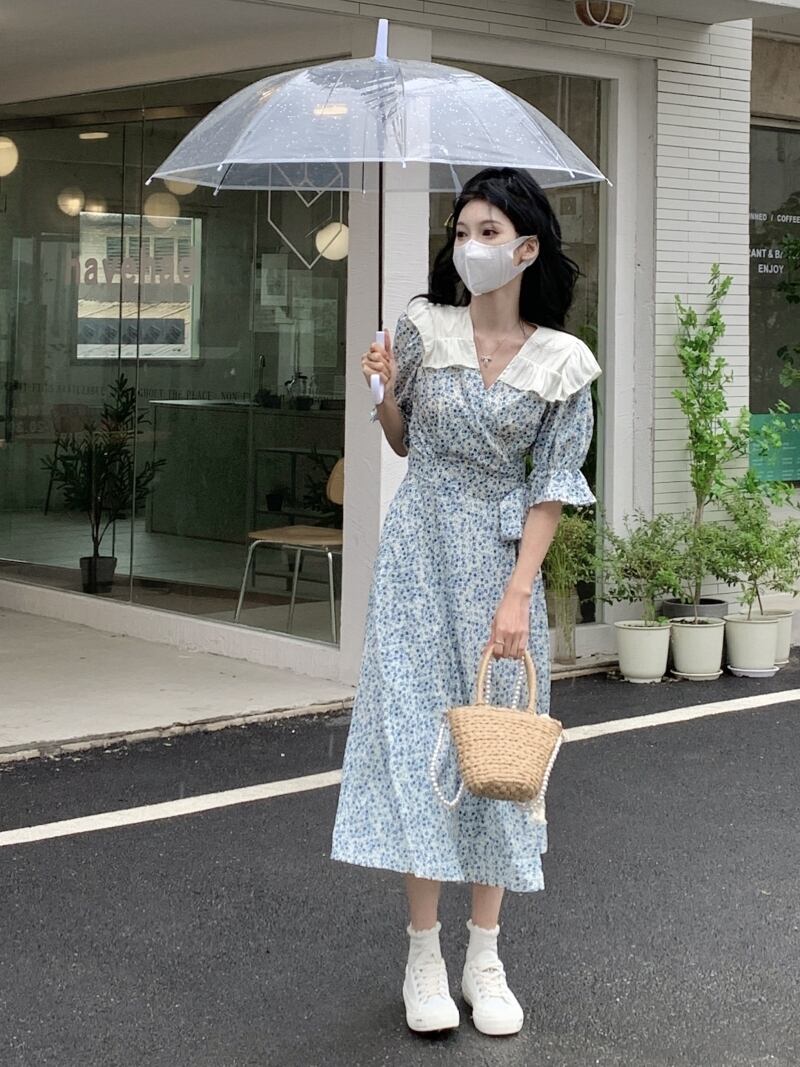 V-neck floral dress women's summer 2022 new design niche temperament split one-piece long skirt ロング サマー 夏物 花柄 スカート Vネック s576152788753150
