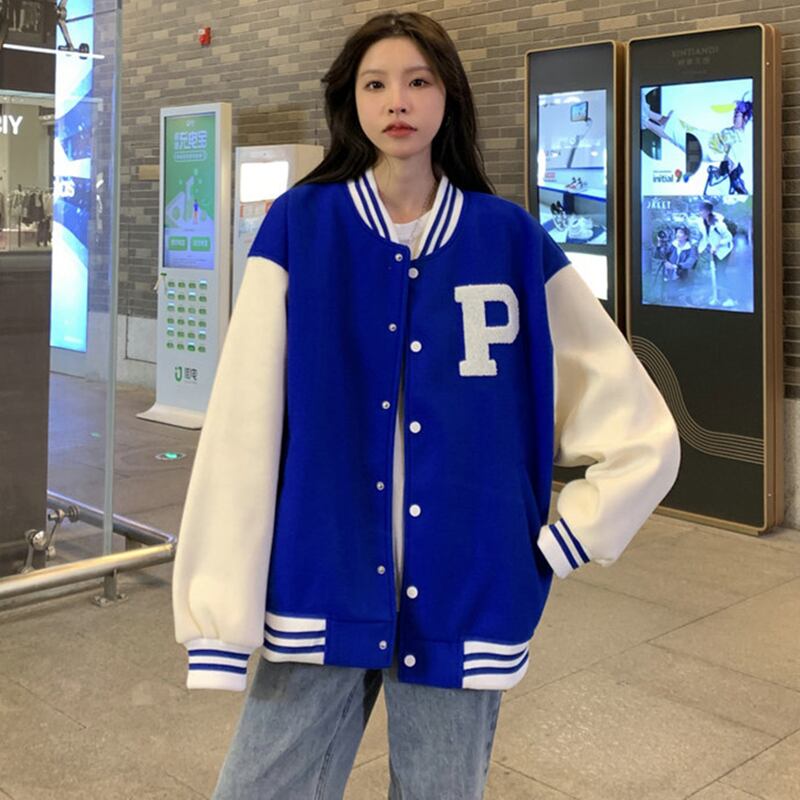 Klein blue baseball unim women's spring all-match 2022 new national tide American retro campus small jacket ブルー レトロ スプリング 春物 s576161465355954