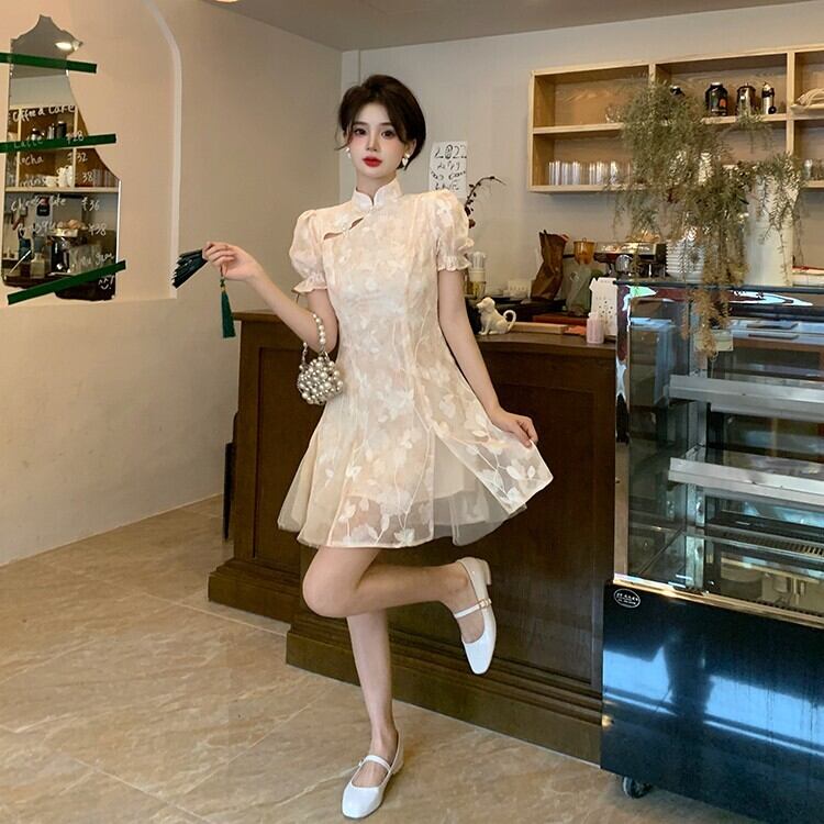 Improved cheongsam floral dress female summer 2022 new high-end unique temperament gentle wind split long skirt ロング サマー 夏物 花柄 スカート s576117817254639