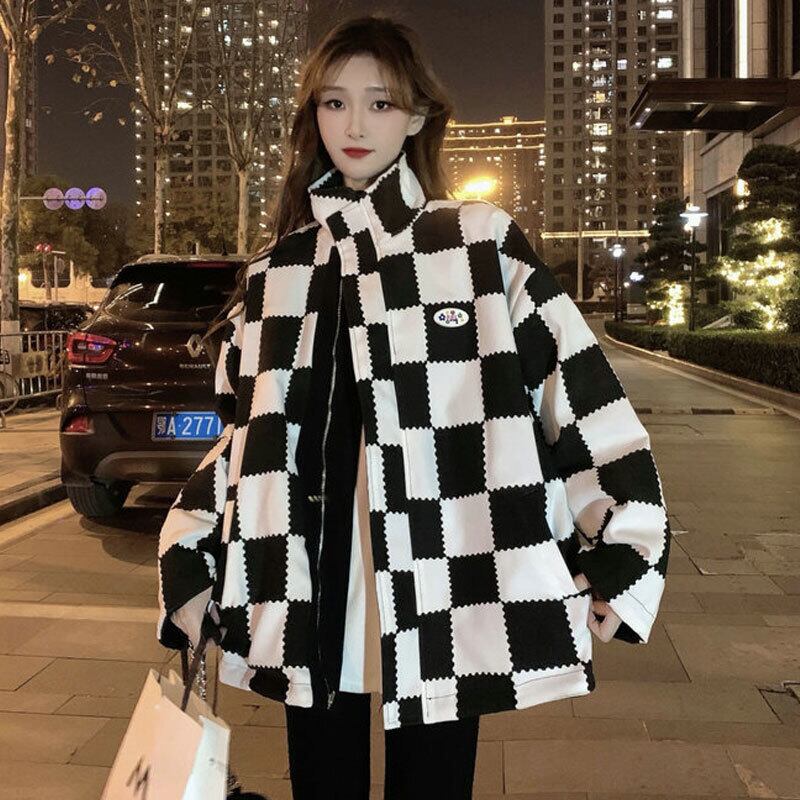 Checkerboard plaid jacket women's spring all-match 2022 new American retro oversize high-end double-sided wear レトロ スプリング 春物 s576111474814982