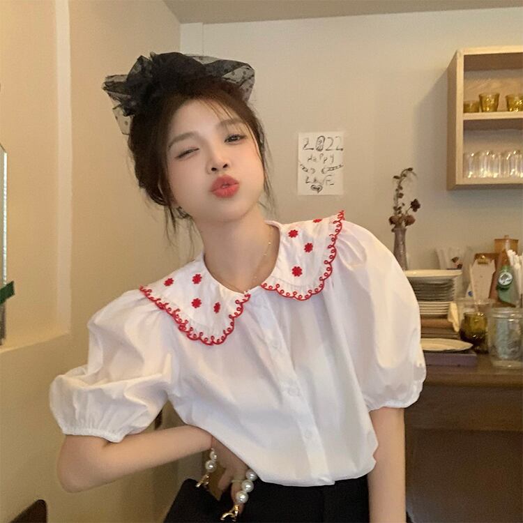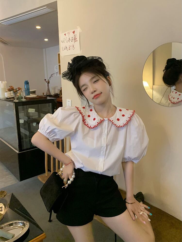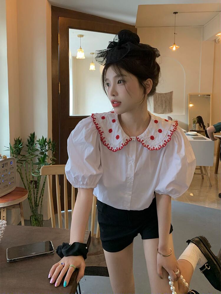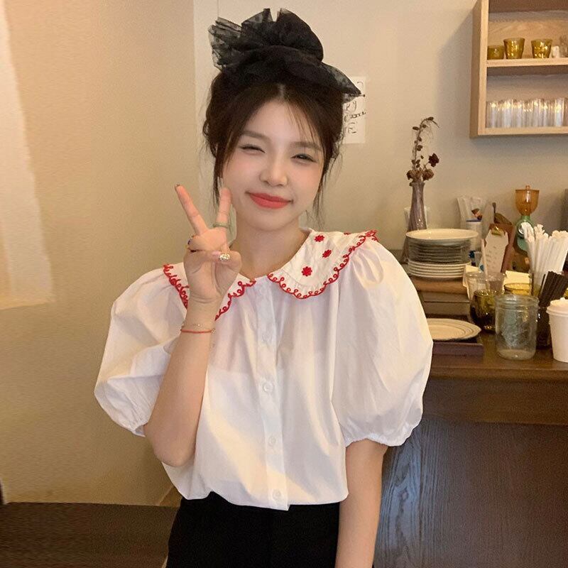 style Western-style age-reducing doll collar top clothes women's summer 2022 new temperament sweet white puff sleeve shirt ホワイト 大人ガーリー スウィート キュート カジュアル サマー 夏物 s576147135899555