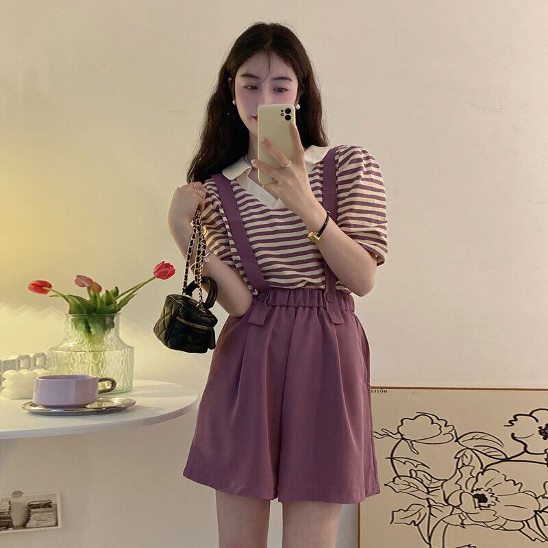 Striped short-sleeved T-shirt women's design sense niche summer 2022 new chic Hong Kong flavor loose casual top ins tide カジュアル サマー 夏物 ストライプ Tシャツ s576180503273627