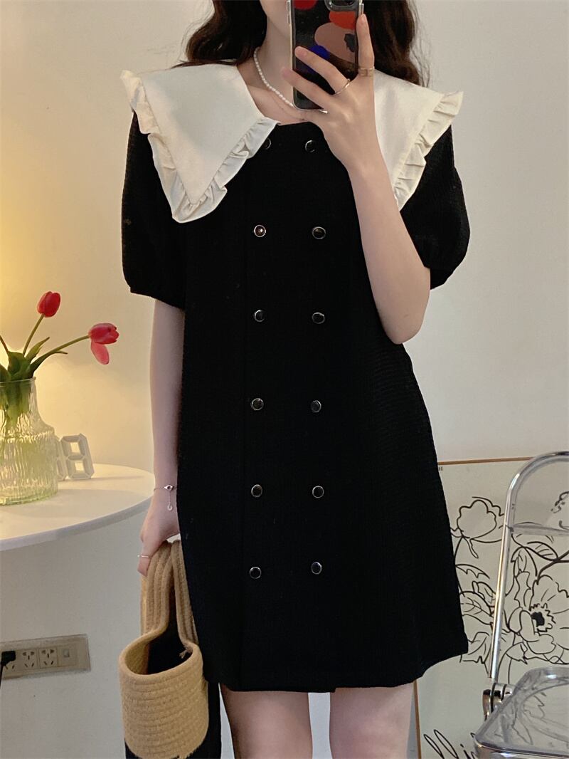 Black doll collar dress women's design sense niche summer French sweet gentle chic small short skirt ショート ブラック 大人ガーリー スウィート キュート カジュアル サマー 夏物 スカート s576135185376044