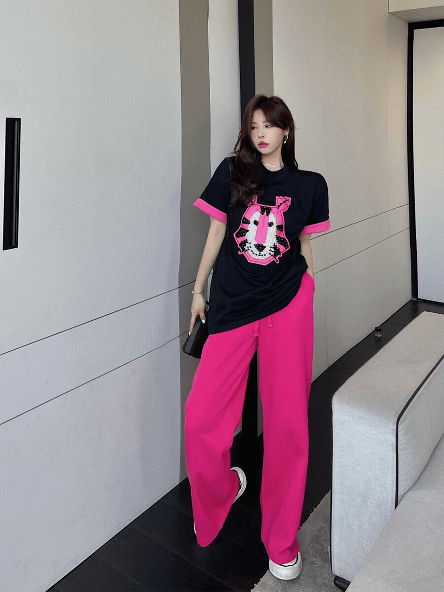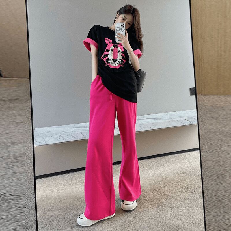 Rose red sports pants women's summer high-end American loose sweatpants 2022 new high waist casual wide leg pants ハイウェスト レッド カジュアル サマー 夏物 ワイドレッグ ワイドパンツ s57611464946169