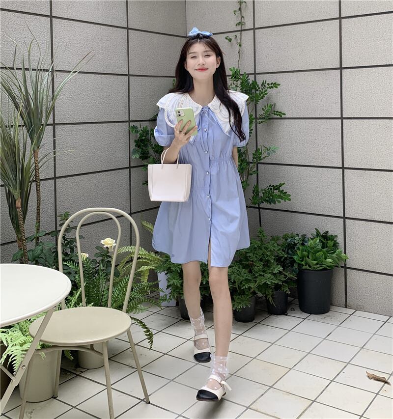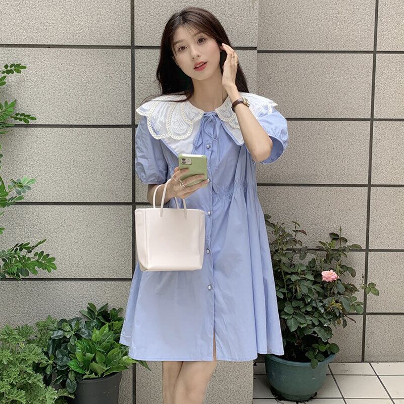 Blue puff sleeve doll collar dress female summer 2022 new small style gentle milk sweet skirt ブルー 大人ガーリー スウィート キュート カジュアル サマー 夏物 スカート s57617072115214