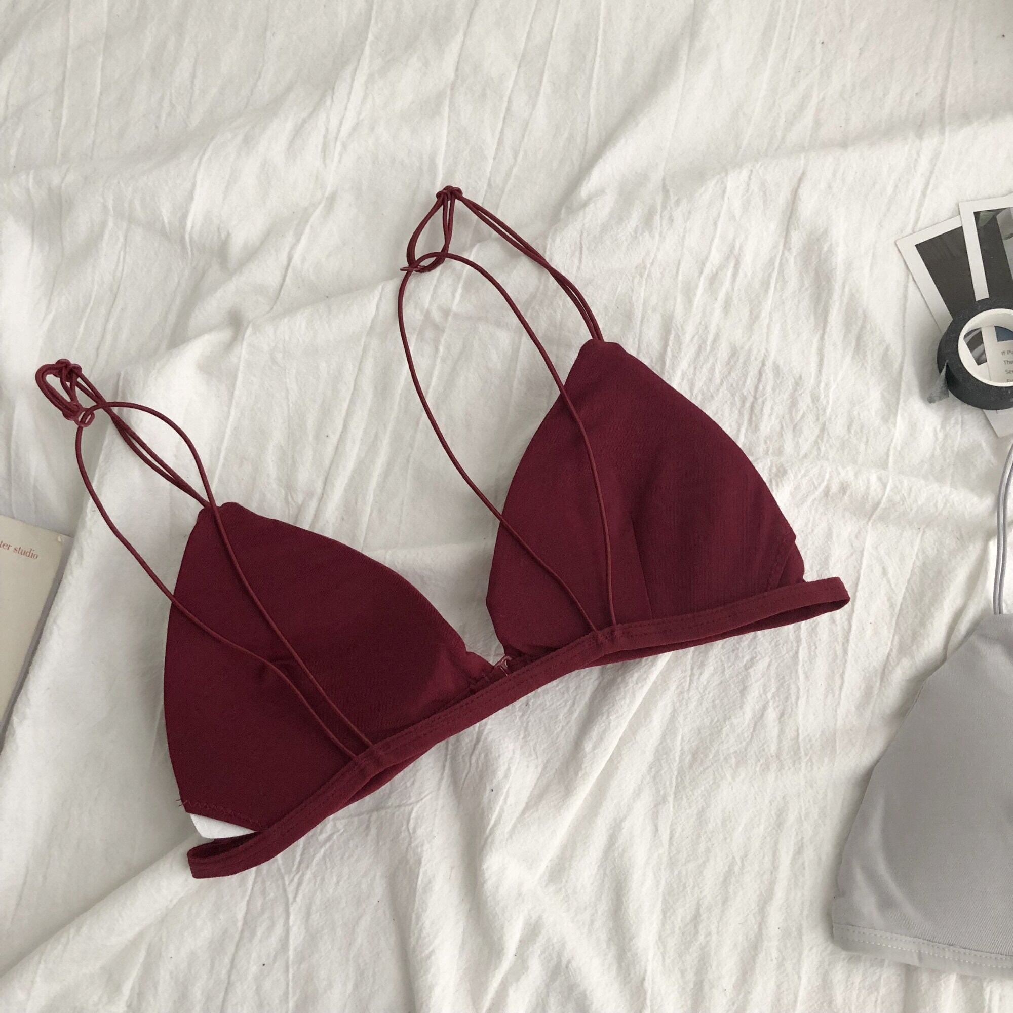 Sexy ultra-thin shoulder straps no steel ring triangle cup bikini beautiful back front buckle bra ins net red thin underwear women レッド ビキニ リング 指輪 s576154485953219
