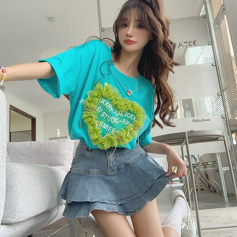 Love short-sleeved T-shirt women's summer design sense niche 2022 new sweet loose medium and long top clothes ロング 大人ガーリー スウィート キュート カジュアル サマー 夏物 Tシャツ s576145738404157