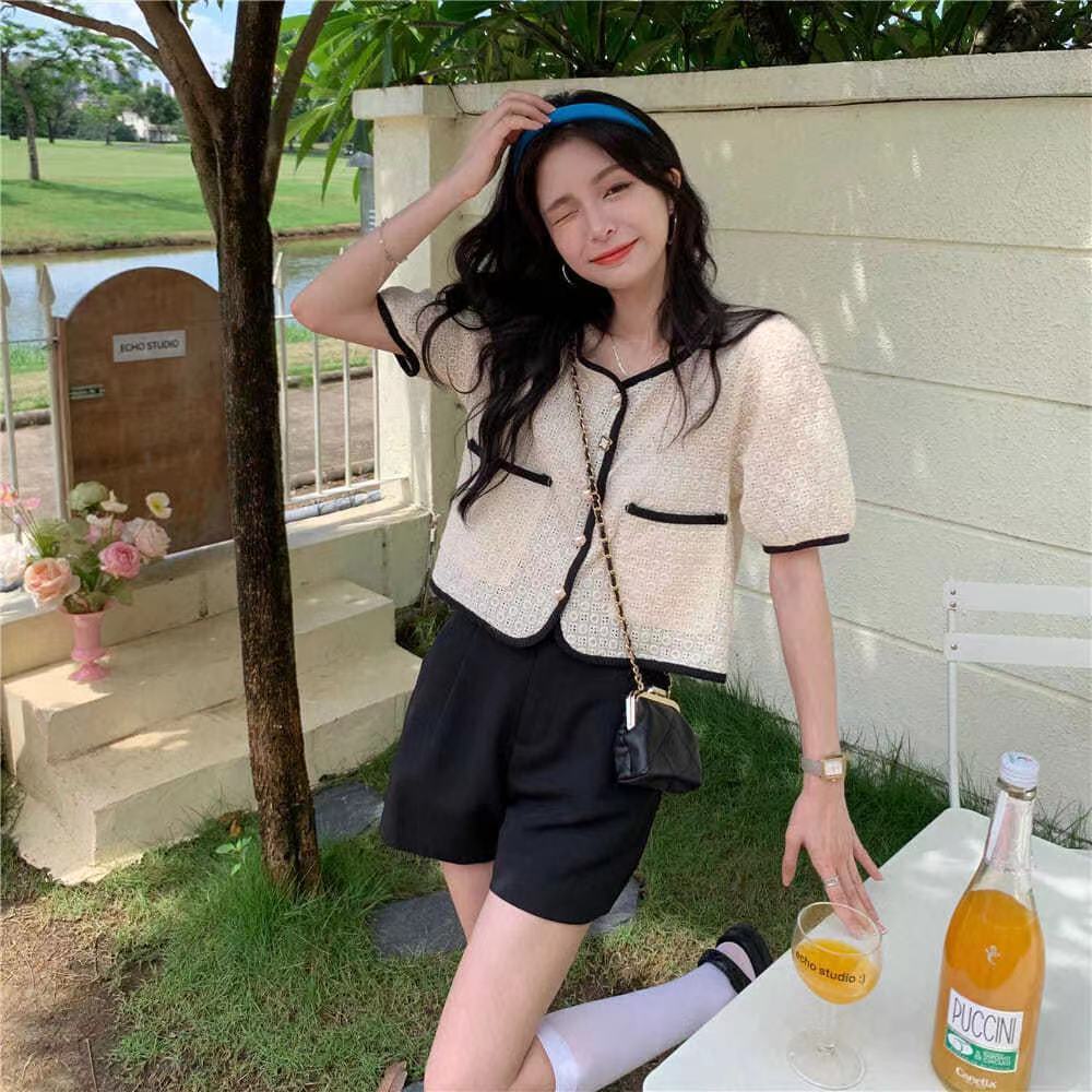 Xiaoxiangfeng short top women's clothing design sense niche summer French chic high-end unique temperament short-sleeved shirt ショート サマー 夏物 s576150259174373