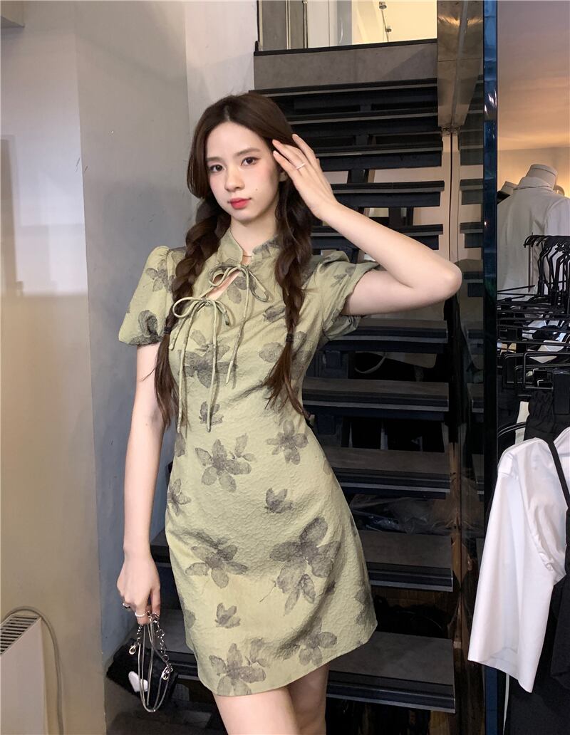 Improved cheongsam dress women's summer 2022 new design sense of small slim fit and thin puff sleeves short skirt ショート サマー 夏物 スカート スリム s57611353593893