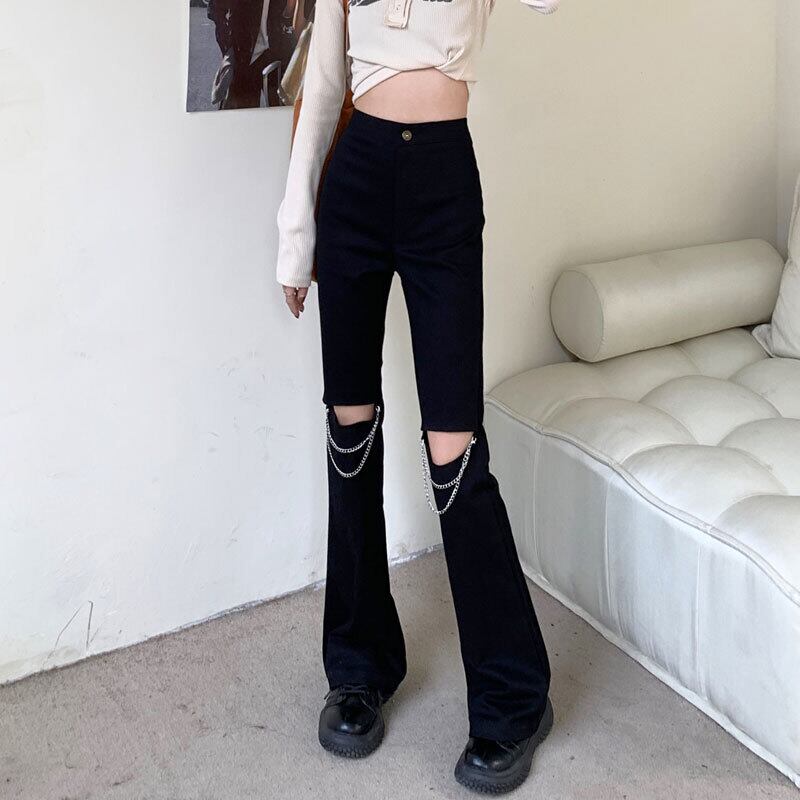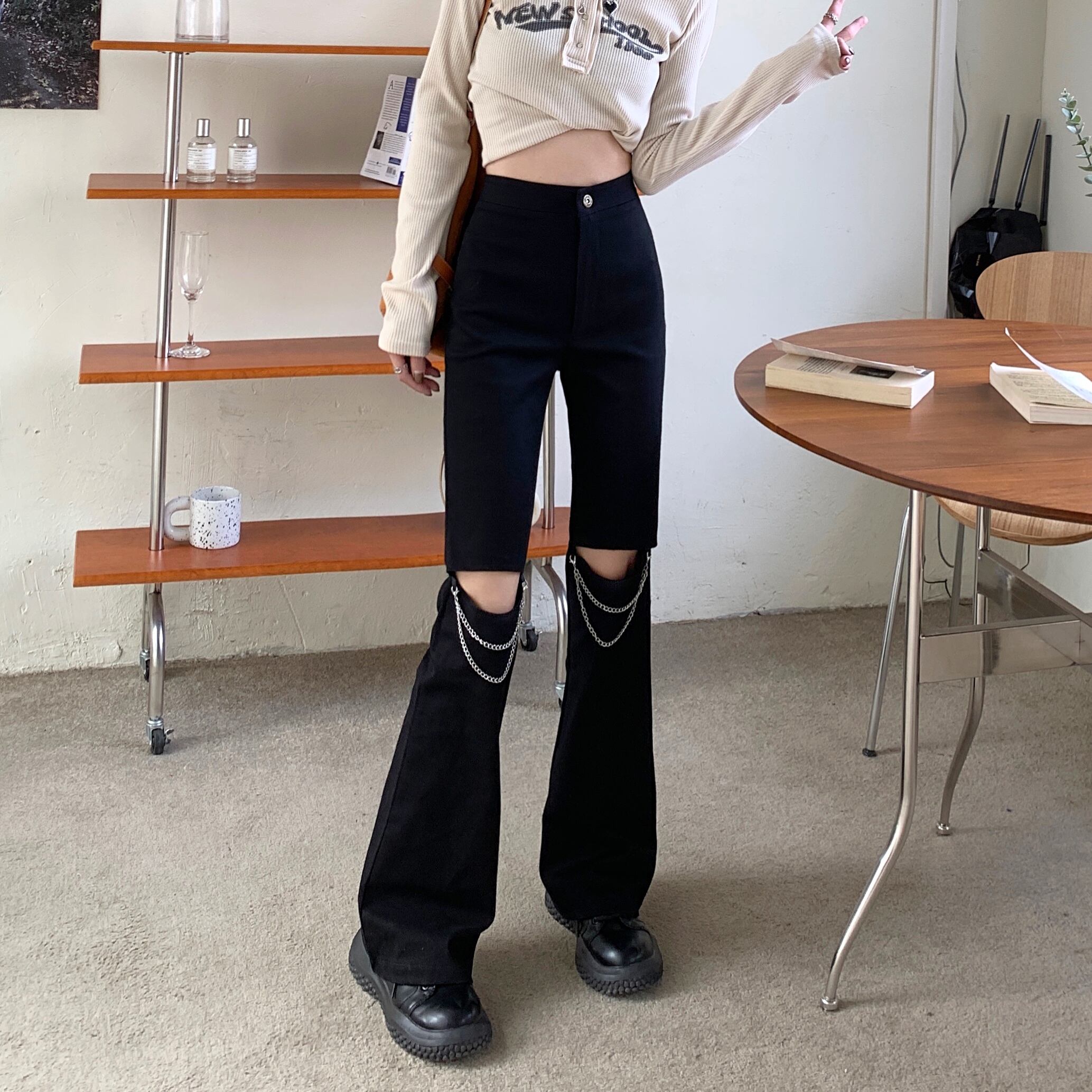 Black jeans women's summer design sense niche 2022 new chic all-match flared pants high street ins tide レッド ブラック ストリート サマー 夏物 s576179022527416
