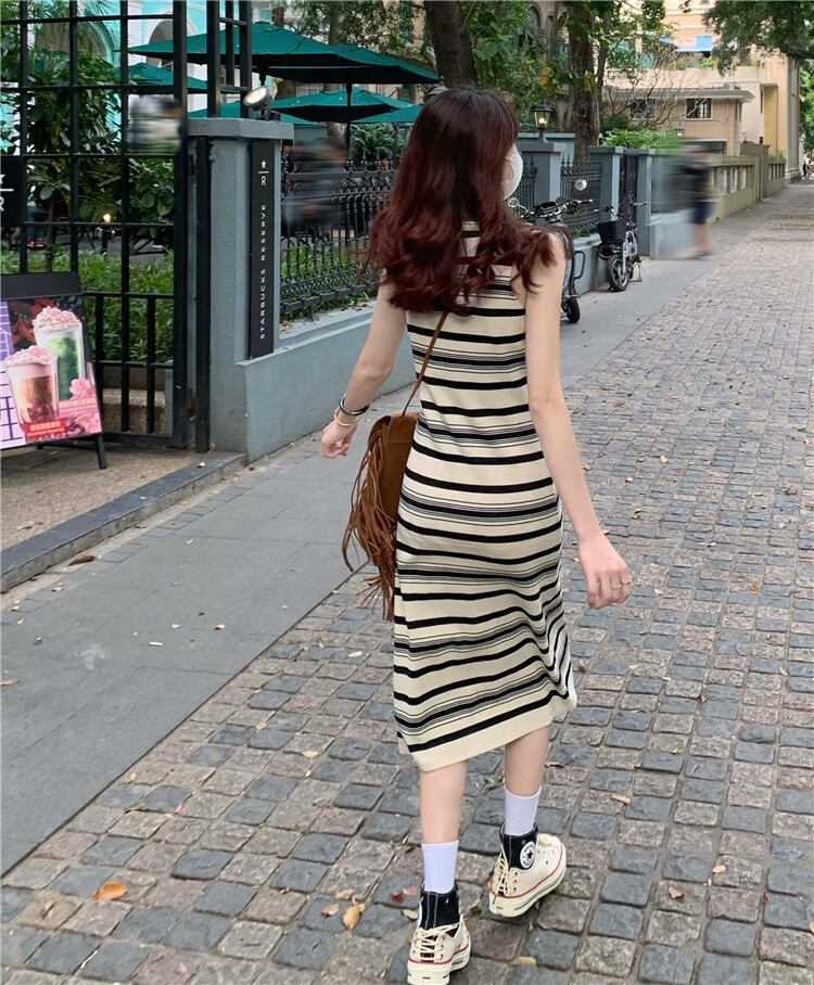 Hot striped vest dress female summer 2022 new Hong Kong style high-end temperament slim bag hip long skirt ロング サマー 夏物 スカート ストライプ スリム s576129772961984