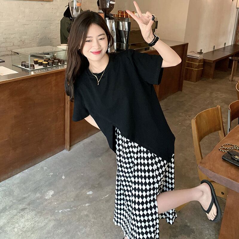 Irregular short-sleeved T-shirt women's design sense niche summer chic chic black split top clothes ins tide ブラック サマー 夏物 Tシャツ s576192454612955