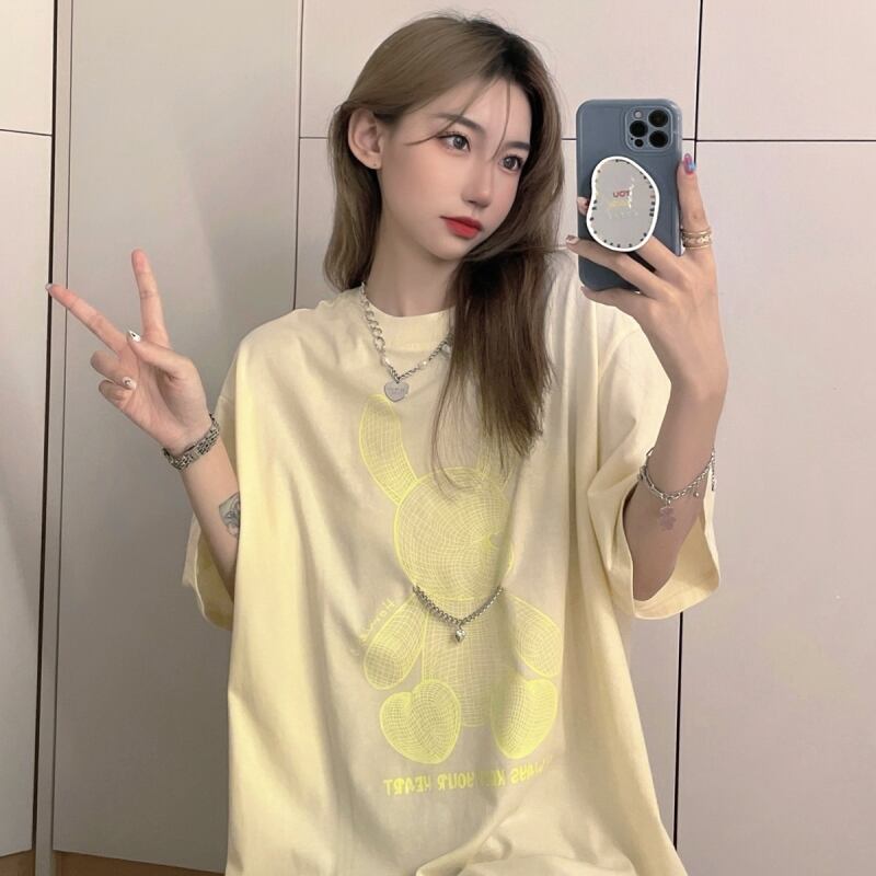 Millennium short-sleeved T-shirt women's summer sweet and cool bear cartoon thin and loose mid-length half-sleeved top clothes compionate shirt 大人ガーリー スウィート キュート カジュアル サマー 夏物 Tシャツ s57616083774568