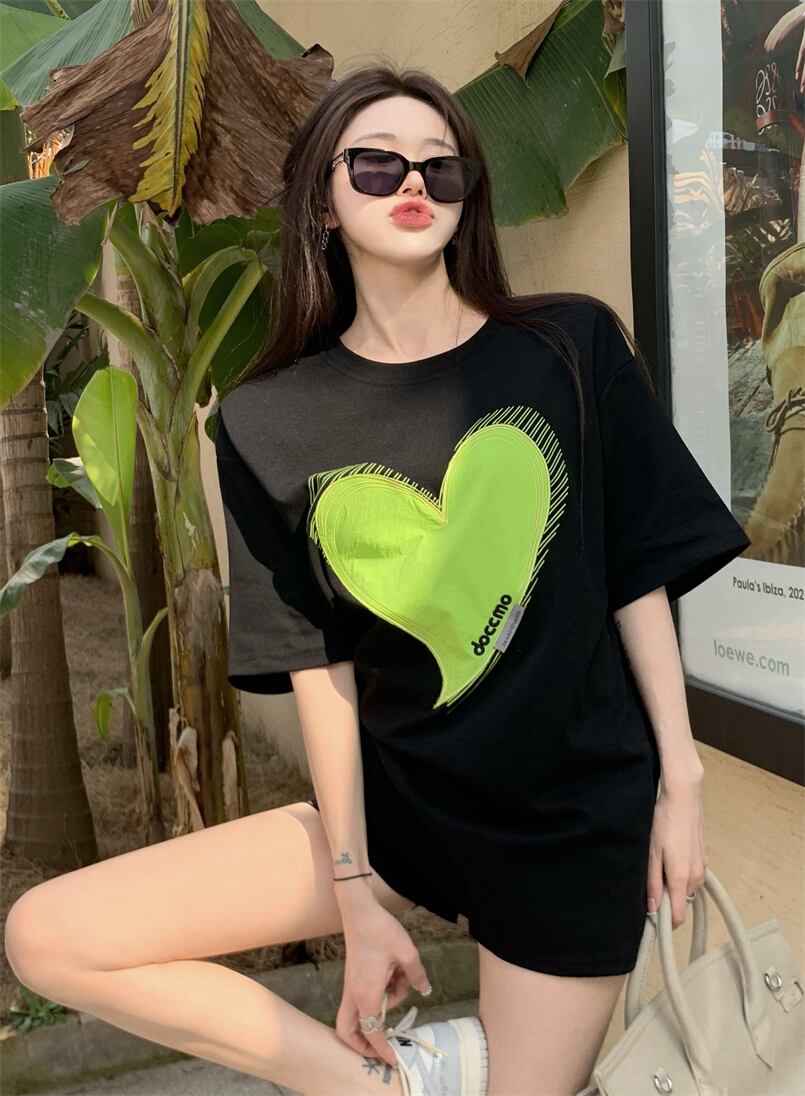 Love short-sleeved T-shirt women's clothing design sense niche summer 2022 new chic Hong Kong flavor black mid-length top ブラック サマー 夏物 Tシャツ s576198124136201