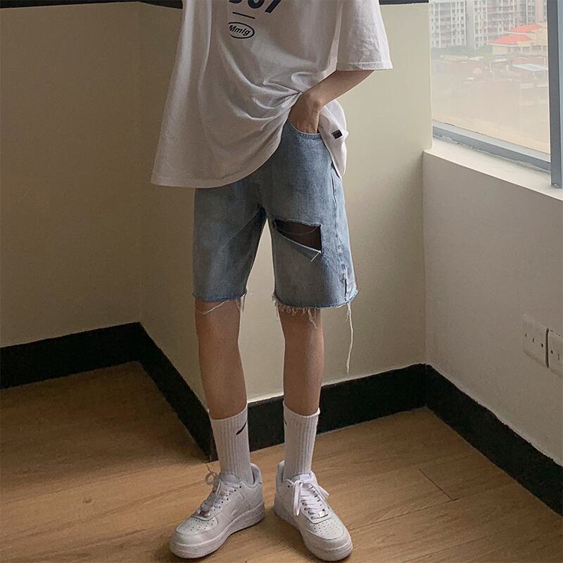 Cool salt series ripped jeans women's summer design niche 2022 new high-waisted loose five-point wide-leg pants サマー 夏物 s576137402782019