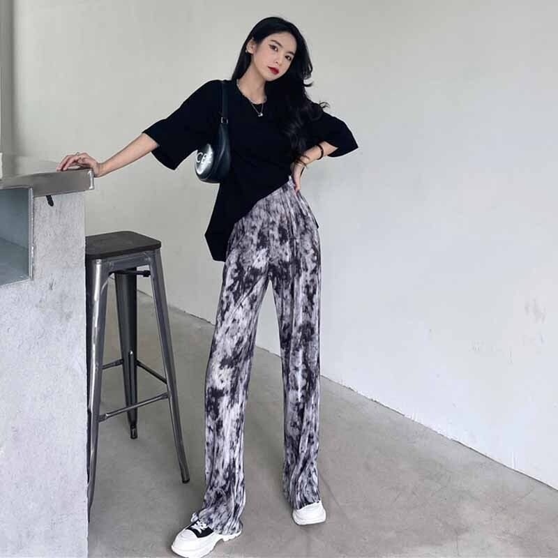 Tie-dye pants women's fashion ins summer 2022 casual high waist show thin drooping wide leg pants spring and autumn thin ice silk ハイウェスト カジュアル スプリング 春物 サマー 夏物 オータム 秋物 ワイドレッグ ワイドパンツ s576123708302613