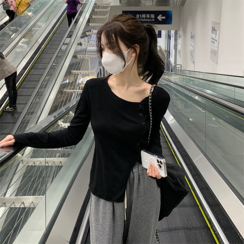 White long-sleeved T-shirt women's summer 2022 new design sense niche net red popular slim-fit slit top ins tide ロング ホワイト レッド サマー 夏物 Tシャツ s576189459213220