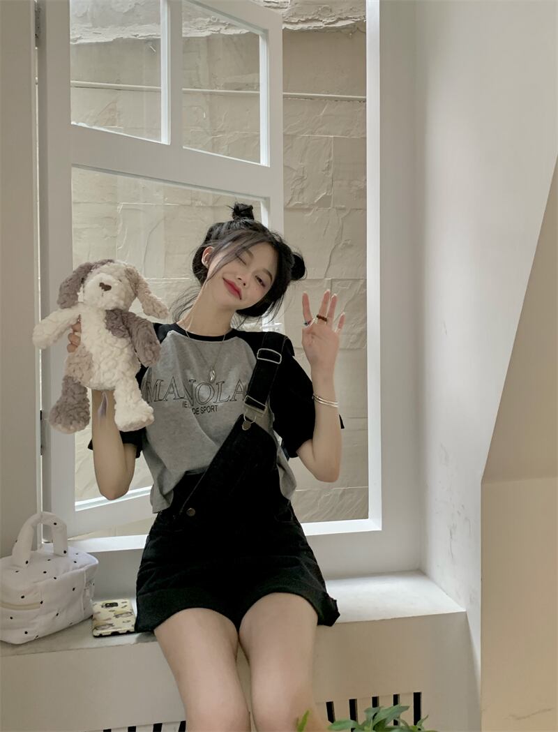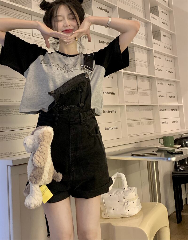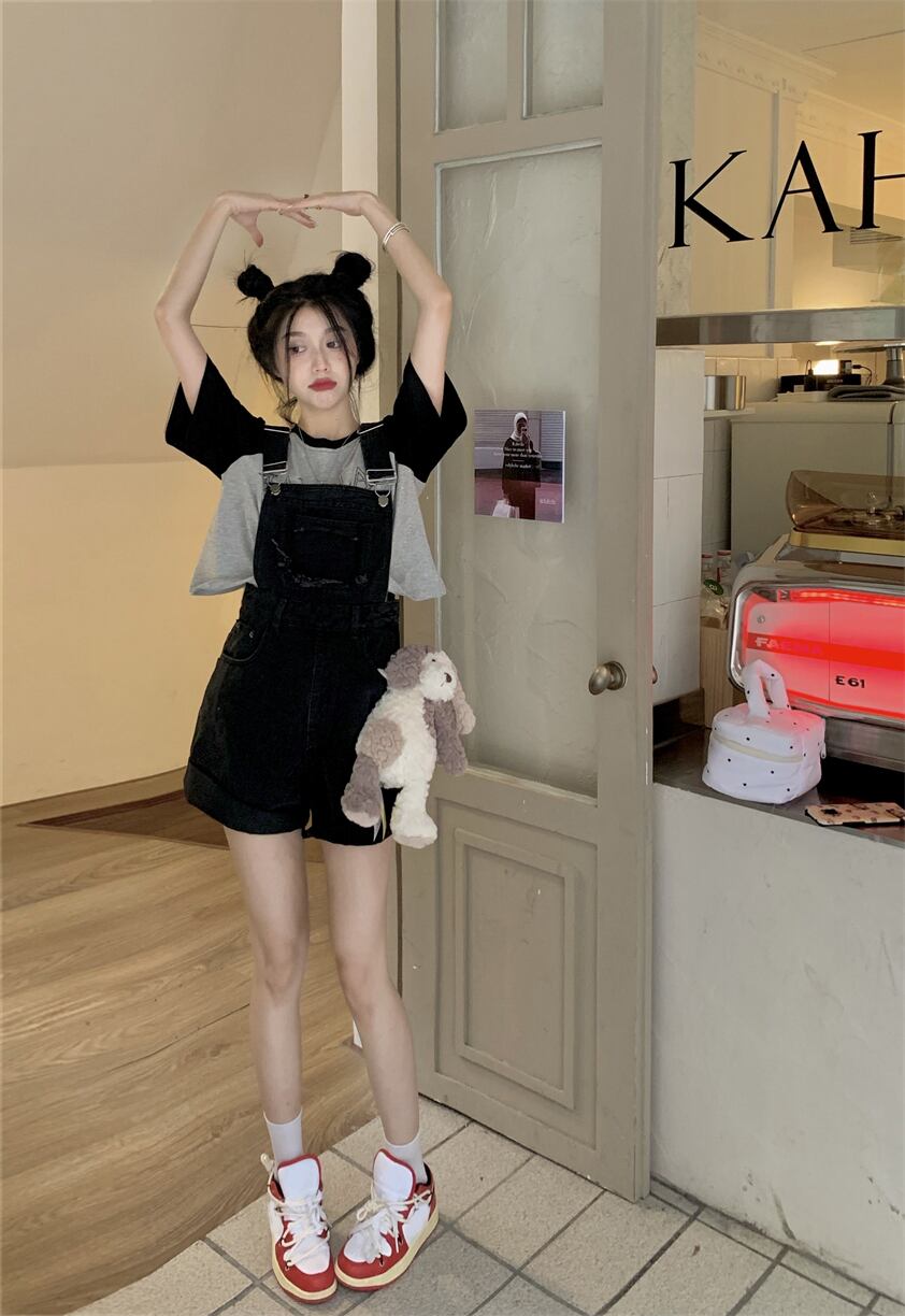 Black denim overalls shorts women's design sense niche summer can be salty and sweet fried street small wide-leg pants ブラック ストリート 大人ガーリー スウィート キュート カジュアル サマー 夏物 ショーツ ブルマー s576140279769593