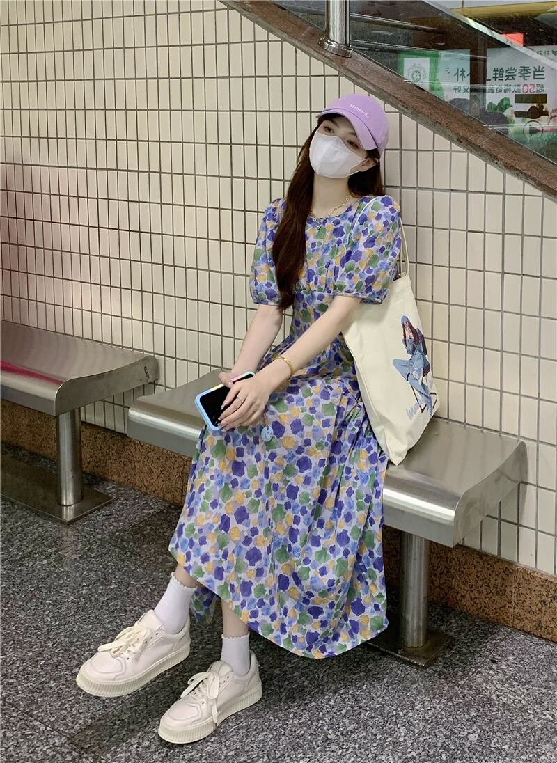 Floral dress women's clothing design sense niche summer 2022 new style gentle first love puff sleeve long skirt ロング サマー 夏物 花柄 スカート s576110874759623
