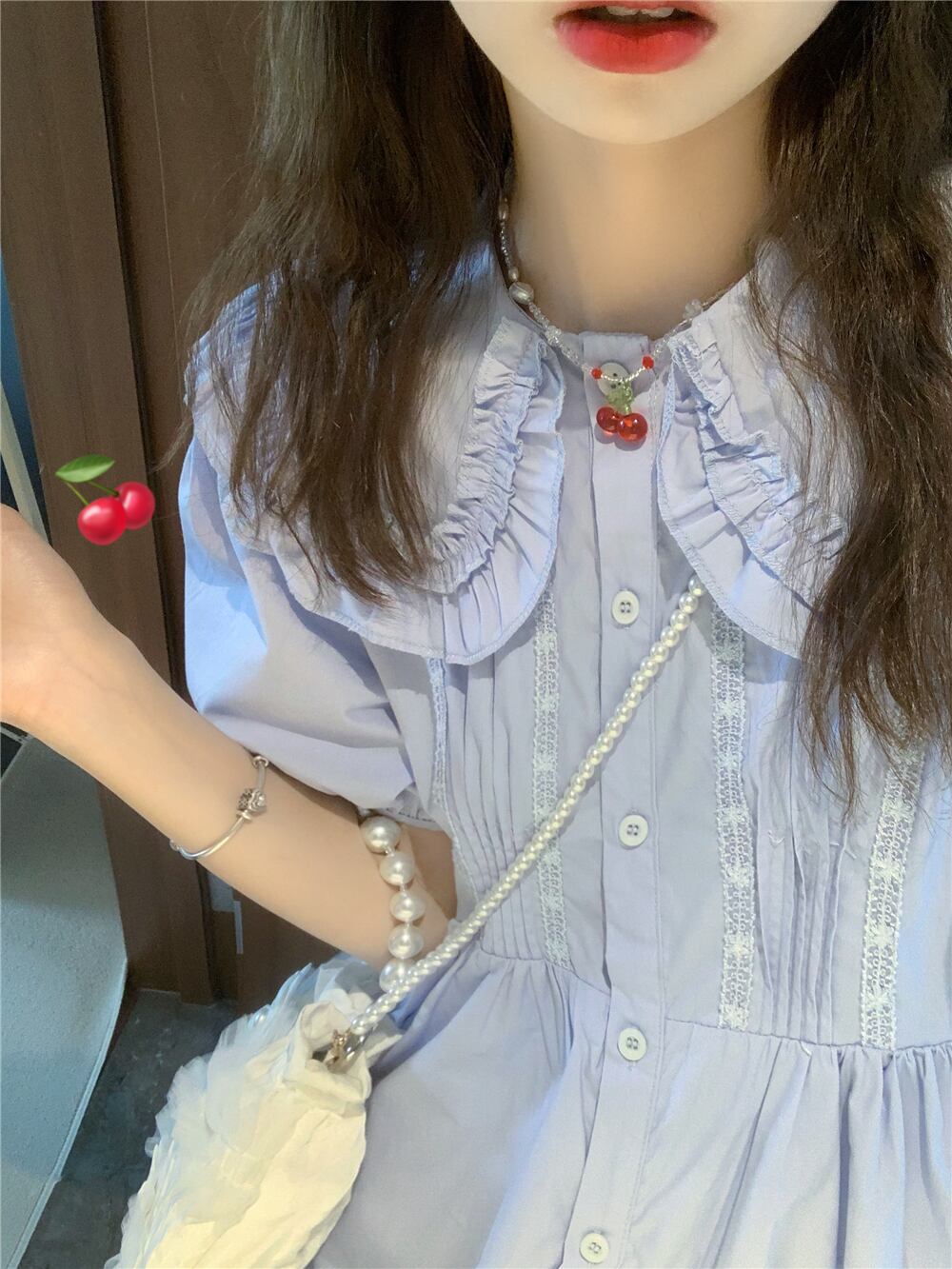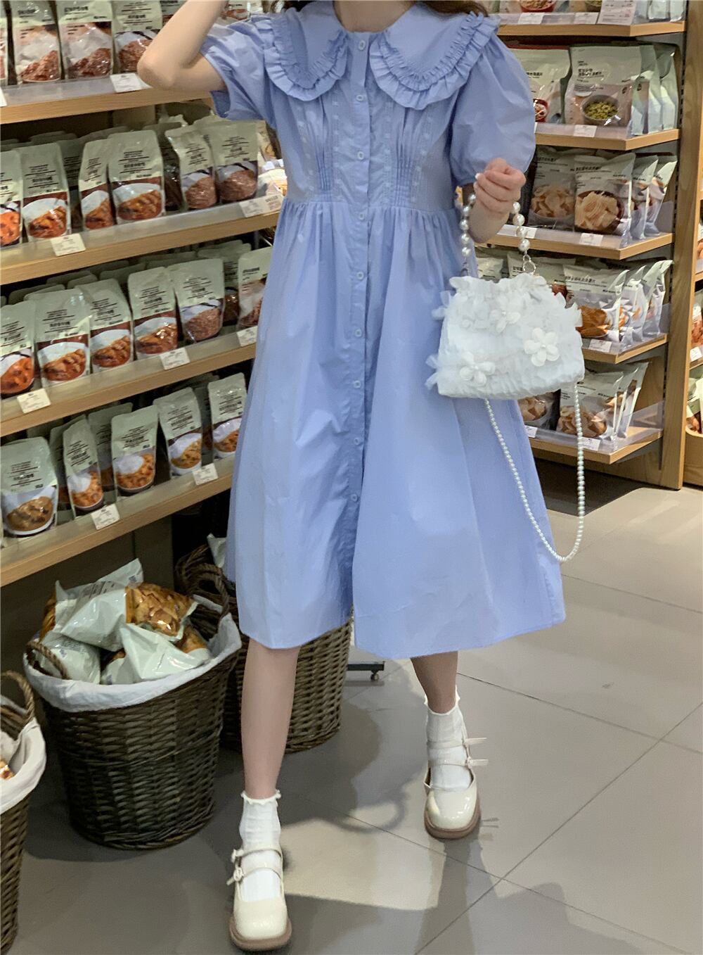 style blue puff sleeve dress female summer 2022 new Western style age-reducing waist doll collar long skirt ロング ブルー サマー 夏物 スカート s576194078629393