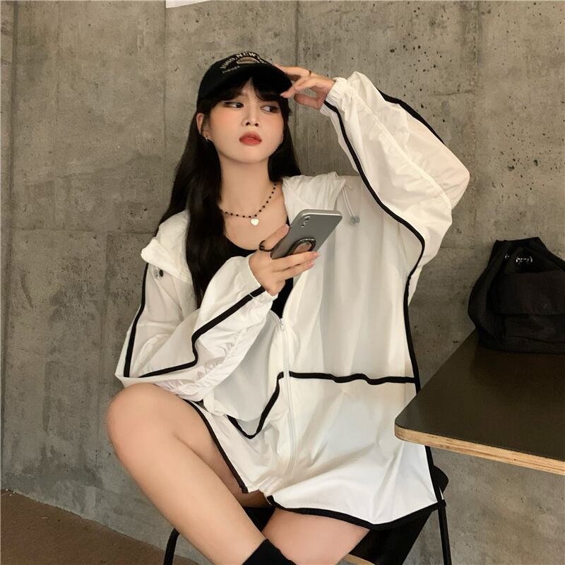 White hooded electric car sun protection clothing women's summer 2022 new oversize design sense UV protection jacket ホワイト サマー 夏物 s576198705063421