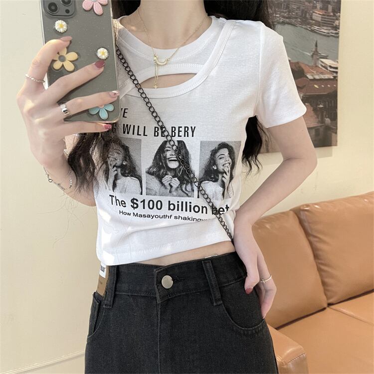 Sweet cool wind careful machine short top women's summer 2022 new American retro design short-sleeved T-shirt ショート レトロ 大人ガーリー スウィート キュート カジュアル サマー 夏物 Tシャツ s576113287606489