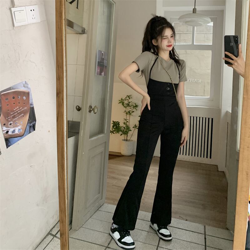 Sweet Spice Black Bibs Women's Summer 2022 Small Tight Stretch Versatile Flared Pants レッド ブラック 大人ガーリー スウィート キュート カジュアル サマー 夏物 s5761903653104